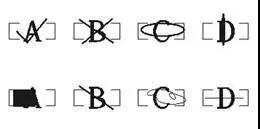 Ø如果某个选项被墨水等物质沾污,会影响计算机识别、评分,如下图所示: